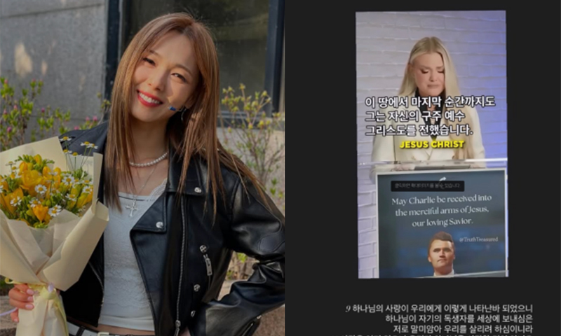 지난 16일 선예는 자신의 SNS에 “이 땅에서 마지막 순간까지도 그는 자신의 구주 예수 그리스도를 전했다”라는 문구가 담긴 커크 추모 영상을 게재했다.