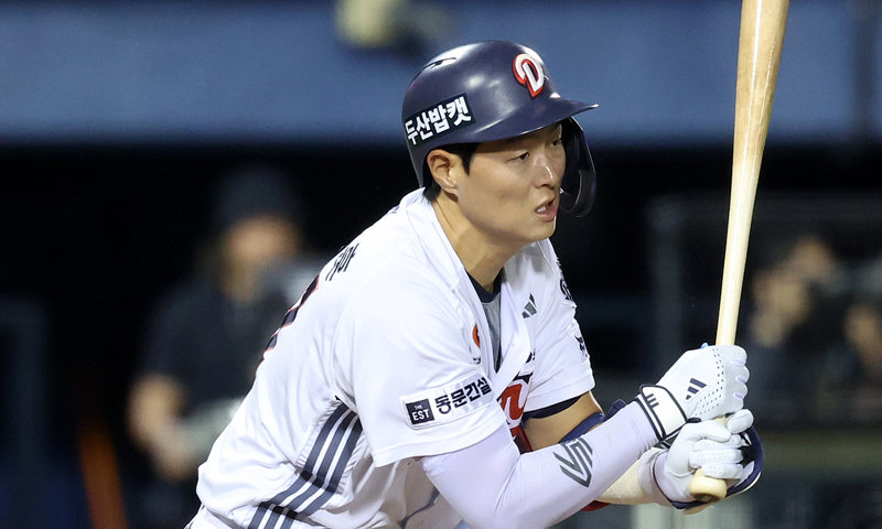 스윕패 위기 속 동점을 만든 건 대타 박지훈이었다. 8회 말 2사에서 김인태 대신 타석에 등장, 우익수 앞 안타로 2루주자 안재석을 홈으로 불러들였다(2-2).