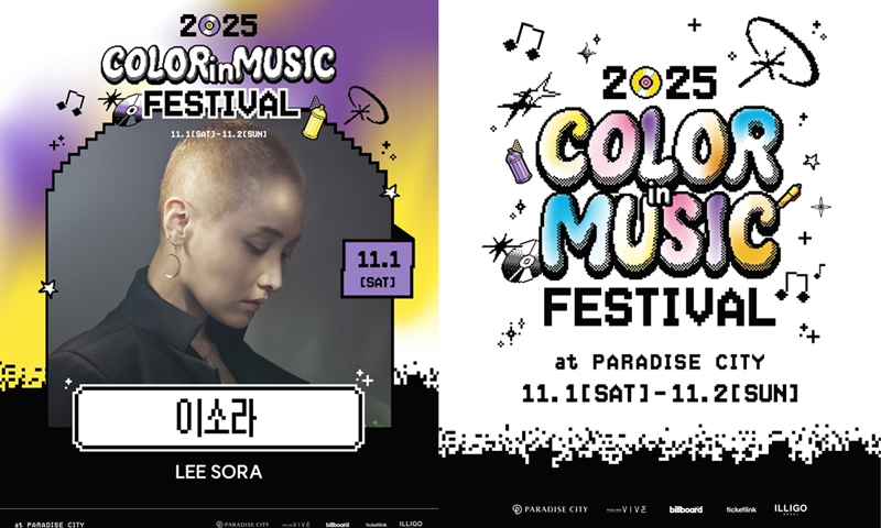 22일 주최사 빌보드코리아는 오는 11월 1일과 2일 인천 파라다이스시티에서 개최되는 '2025 컬러 인 뮤직 페스티벌(2025 Color in Music Festival, 이하 CMF)'의 2차 라인업을 공개했다.