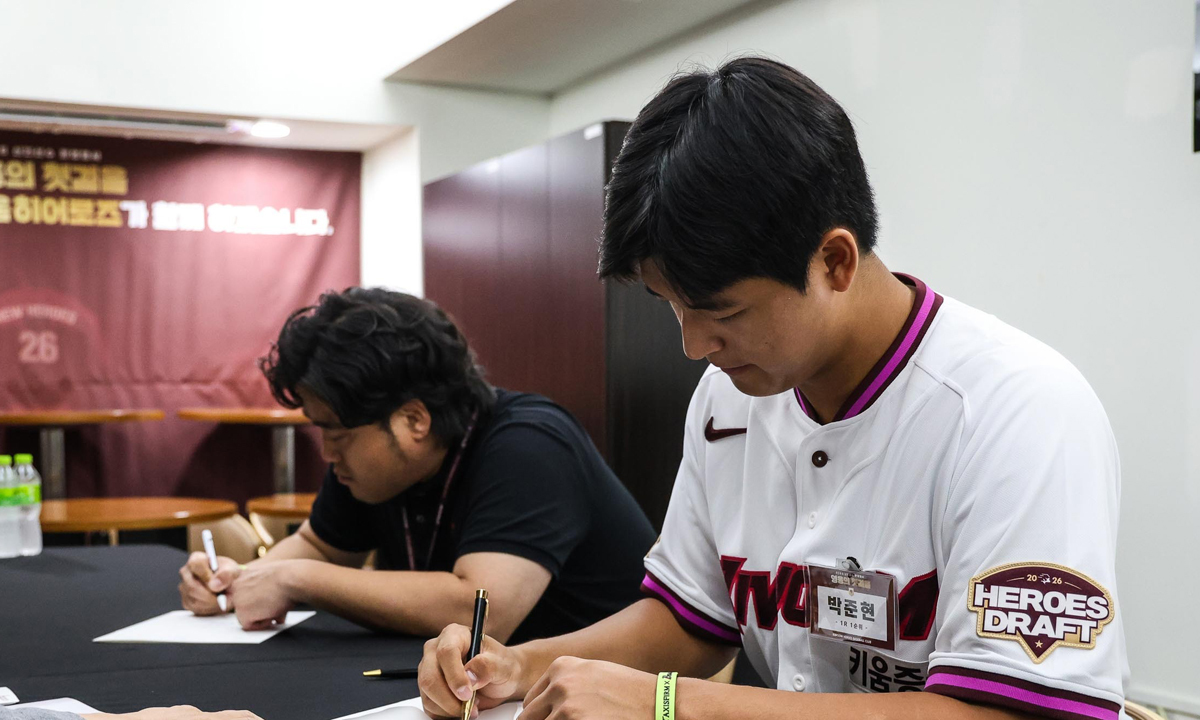 프로야구 키움이 2026 신인선수 13명 전원과 입단 계약을 마쳤다. 2026년 신인 드래프트에서 전체 1순위로 뽑은 북일고 투수 박준현은 계약금 7억원에 도장을 찍었다.
