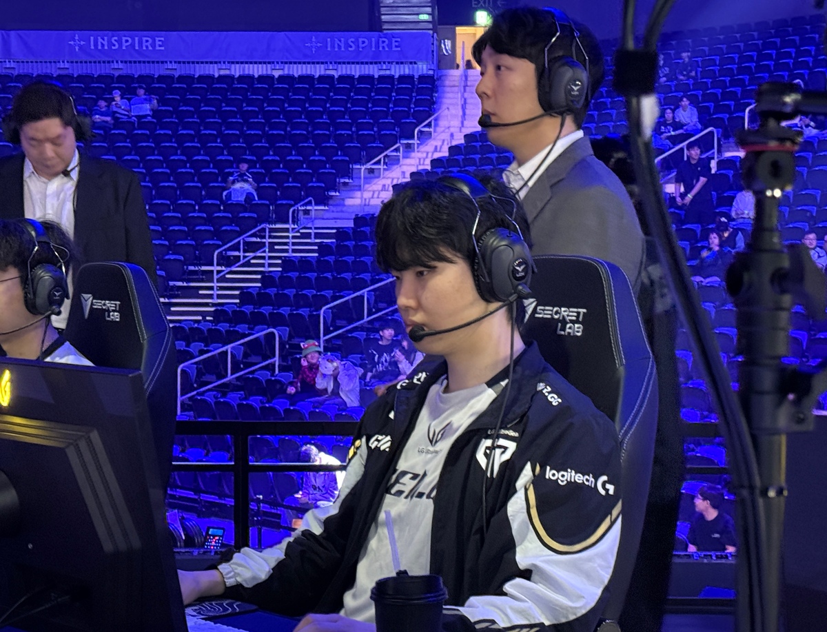 젠지의 미드 라이너 쵸비 정지훈 선수가 경기 전 테크 체크를 하고 있다. 27일 인천광역시 중구에 위치한 인스파이어 아레나에서는 2025 우리은행 LCK 파이널을 위한 결승 진출전이 열린다. 젠지와 kt 롤스터가 맞붙는다.