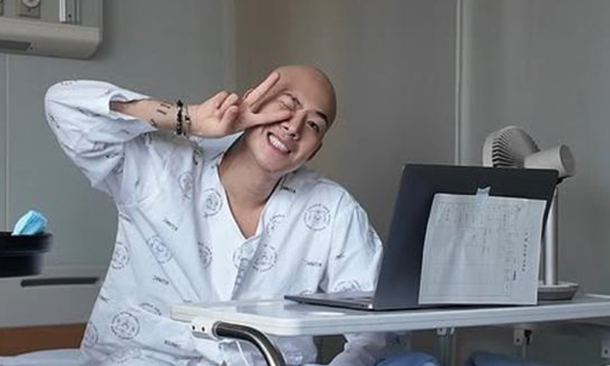 공개된 사진 속 그는 환자복 차림으로 침대에 앉아 환하게 미소 짓고 브이 포즈를 취해 눈길을 끌었다. 투병 중에도 긍정적인 에너지를 잃지 않으려는 모습이 인상적이다.