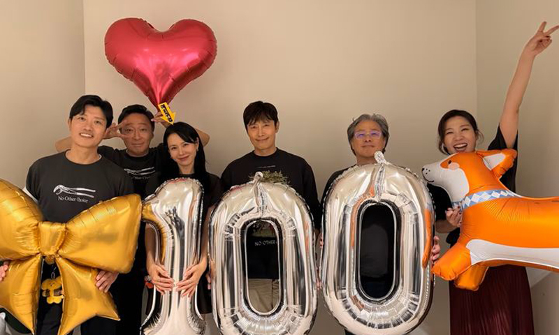 영화 ‘어쩔수가없다’의 박찬욱 감독과 배우진이 100만 돌파를 기념하고 있다.