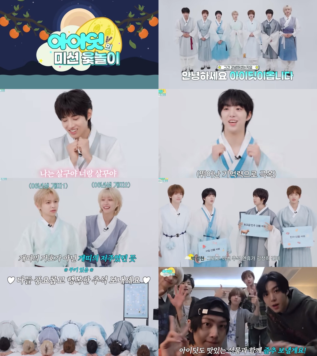 아이딧(IDID)은 최근 공식 유튜브 채널 ’IDID’을 통해 추석을 맞아 윷놀이 대결을 펼치는 모습을 공개했다. 본격 대결에 앞서 멤버들은 한복을 갖춰 입은 눈부신 비주얼로 추석 인사를 올렸으며, 추석에 관한 각자의 즐거웠던 추억을 공유하기도 했다.