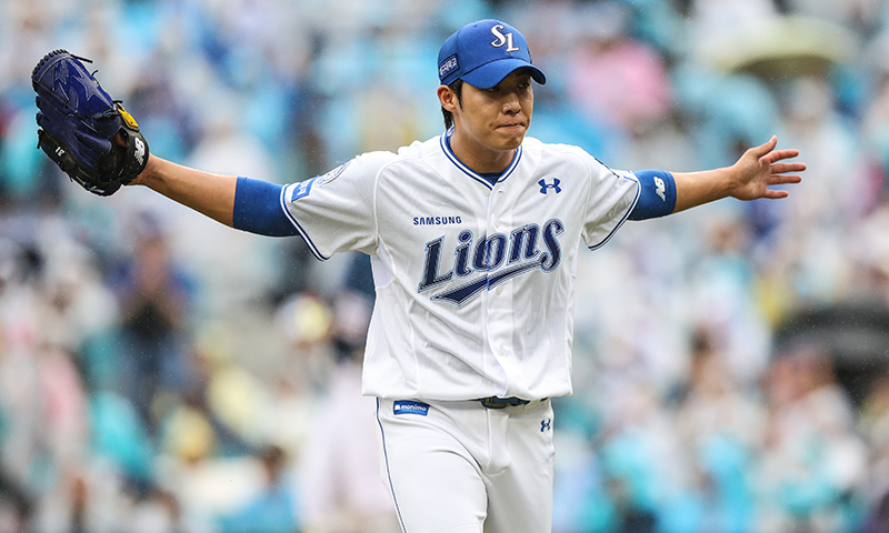 반드시 이겨야만 하는 경기, 뒤를 돌아볼 여유 따윈 없었다. 원태인은 경기 초반부터 100% 힘을 쏟아 부었다. 시속 150㎞대 직구를 바탕으로, 특유의 예리한 커맨드가 인상적이었다. 포수 강민호의 리드에 따라 스트라이크존 구석구석으로 꽂혔다. 단 1점도 내주지 않겠다는 의지가 엿보이는 듯했다. 1회 상대 선발투수 로건 앨런이 흔들리는 틈을 타 2점을 먼저 올렸지만 공격 자체가 원활한 것은 아니었다. 6회까지 팀 안타는 단 1개, 그마저도 적시타는 아니었다.