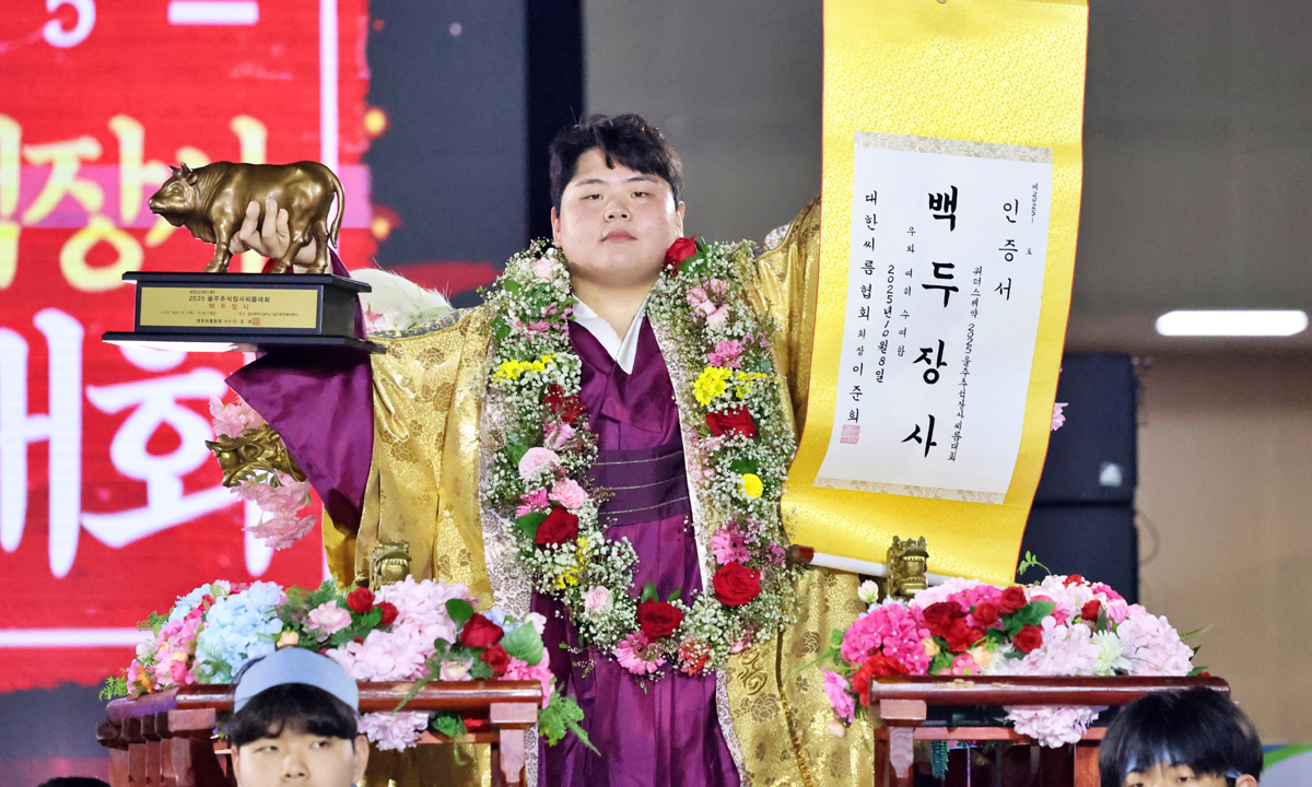 기세는 멈추지 않았다. 백원종과의 결승에서 첫판을 밀어내기로 따낸 그는 이후 연달아 들배지기로 우승 트로피를 들어 올렸다.