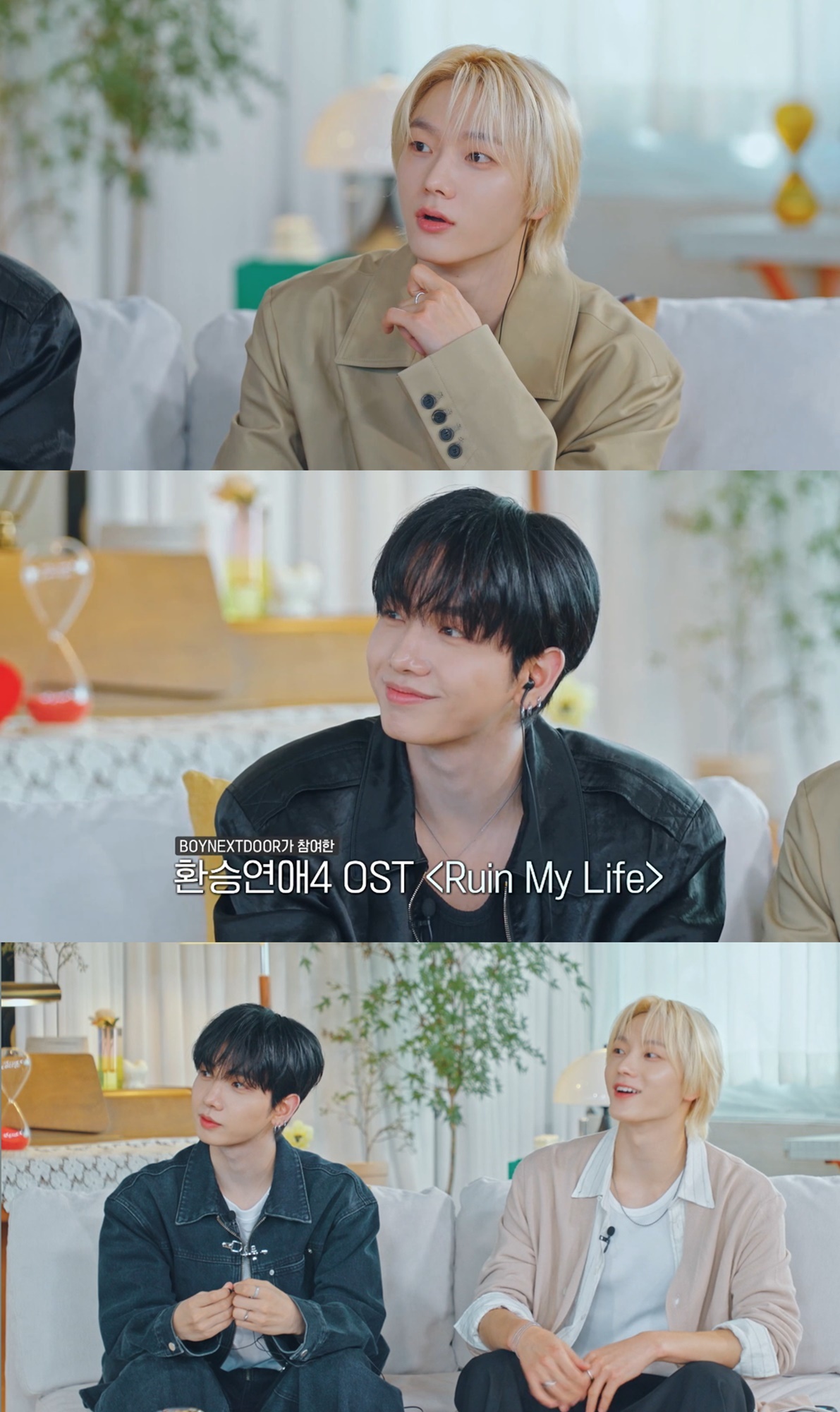 ‘환승연애4’ OST에 참여한 소감도 밝혔다. 성호와 명재현은 “김이나 작사가님이 ‘환승연애’ 시리즈에 잘 어울리는 가사를 써주셨다. 생각했던 상황에서 우리의 노래가 흘러나오니까 기분 좋다”라고 뿌듯해했다. 보이넥스트도어(성호, 리우, 명재현, 태산, 이한, 운학)가 가창한 ‘Ruin My Life’는 지난 1일 공개 후 8일까지 유튜브 인기 급상승 뮤직비디오 순위권에 이름을 올리며 큰 사랑을 받고 있다. 해당 곡은 출연진의 감정이 얽히는 주요 장면에 삽입돼 몰입감을 더한다.