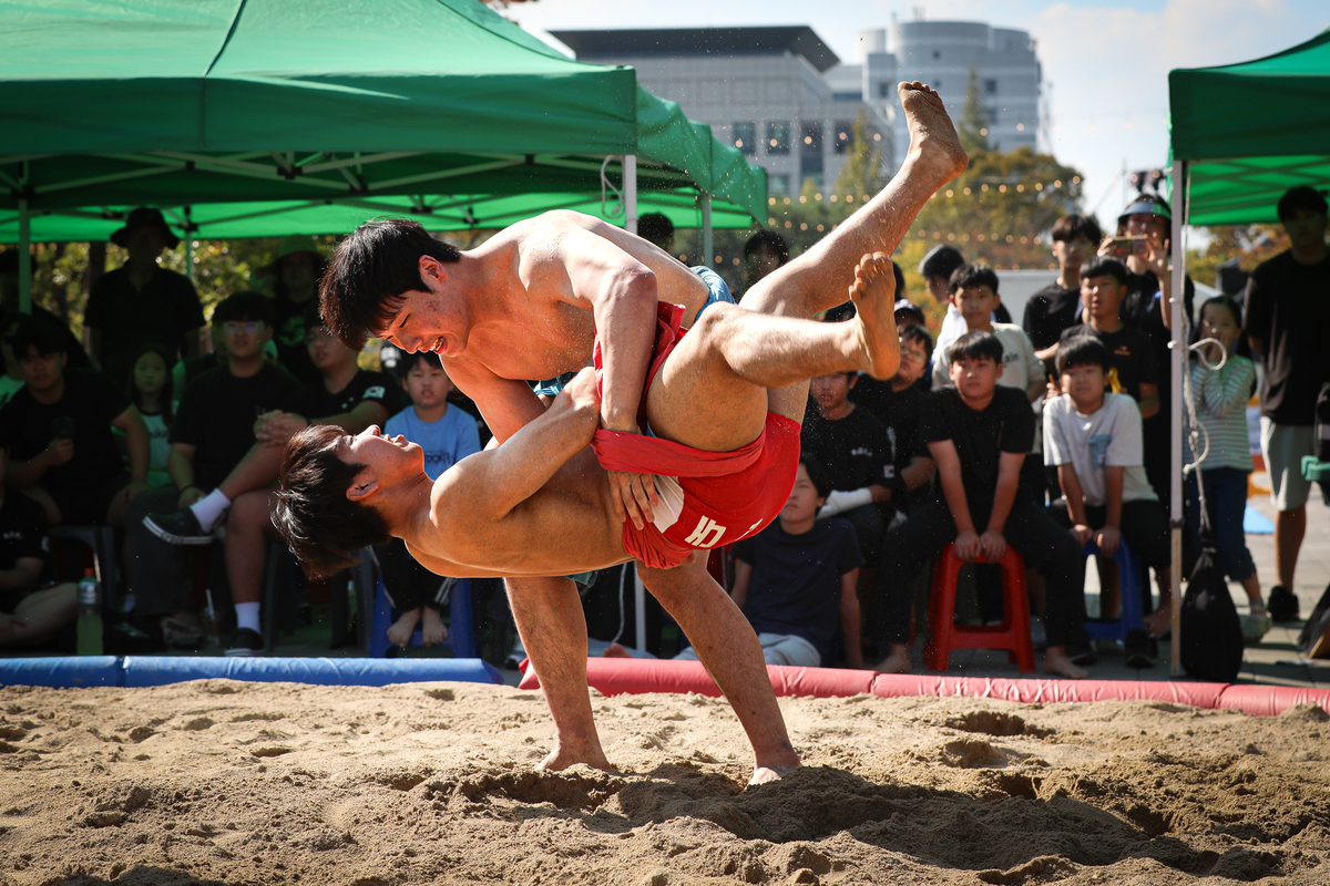 씨름 체험에 이어 남자부·여자부 각각 16강으로 구성된 ‘길거리 씨름 한 판’이 진행되면서 현장 분위기는 한층 고조됐다. 총 31명이 참가한 이번 대회에서는 이현철(성인 남자부), 나윤서(성인 여자부)가 각각 우승을 차지했다.