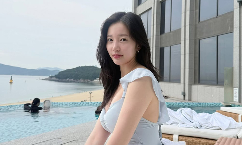 사진 속 윤채경은 바다가 내려다보이는 수영장에서 여유로운 한때를 보내고 있는 모습이다. 자연스러운 민낯에도 불구하고 글래머러스한 몸매가 대비를 이루며 시선을 끌었다.