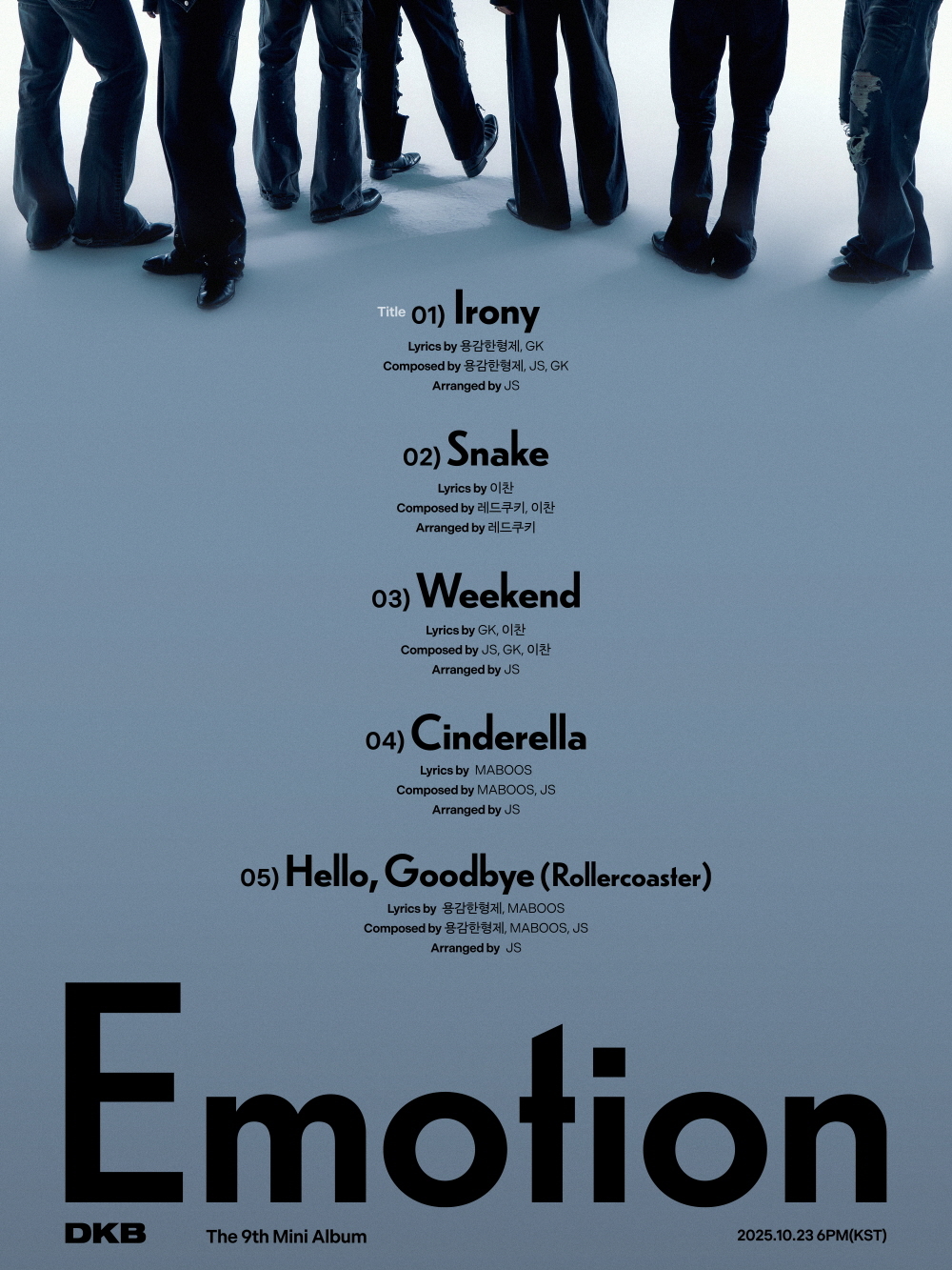 그룹 다크비(DKB)가 오는 23일 미니 9집 'Emotion' 발매를 확정지은 가운데 트랙리스트를 전격 공개하며 컴백 열기를 고조시켰다.