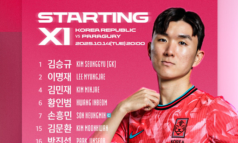 손흥민(LAFC)이 파라과이전 선봉에 선다. 브라질전과 비교해 8명이 바뀐 라인업으로 출격한다.