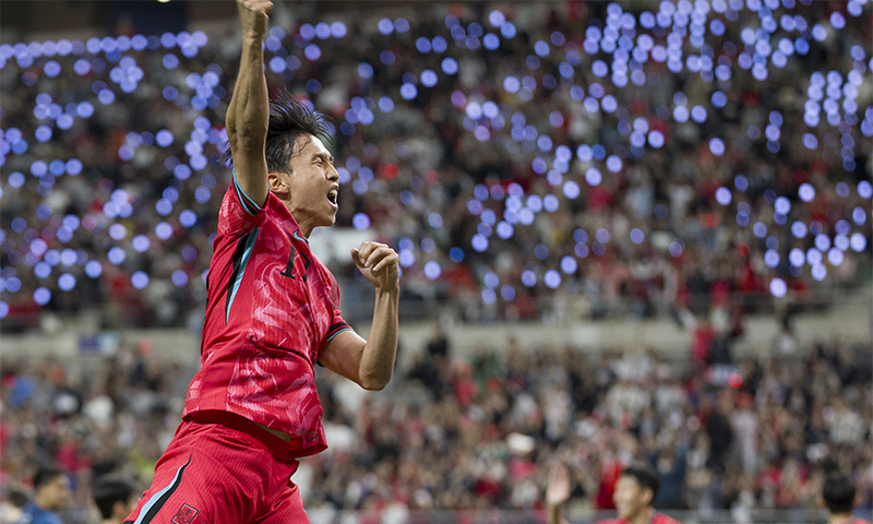 파라과이 수비수가 걷어냈으나 볼은 문전의 엄지성에게 향했다. 엄지성은 그대로 오른발 논스톱 슈팅으로 골문을 갈랐다. 엄지성의 선제골을 신호탄으로 기세를 잡은 한국은 오현규(헹크)의 추가골까지 이어지면서 파라과이에 2-0 완승을 거뒀다.
