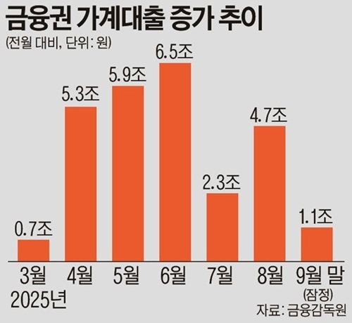 16일 금융위원회의 2025년 9월 가계대출 동향에 따르면 지난달 전 금융권의 가계대출은 1조1000억원 증가한 것으로 나타났다.