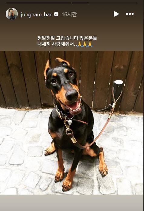 배정남은 20일 자신의 인스타그램에 “정말정말 고맙습니다. 많은 분들 내 새끼 사랑해줘서”라는 짧은 글을 남기며 팬들에게 감사한 마음을 표현했다.