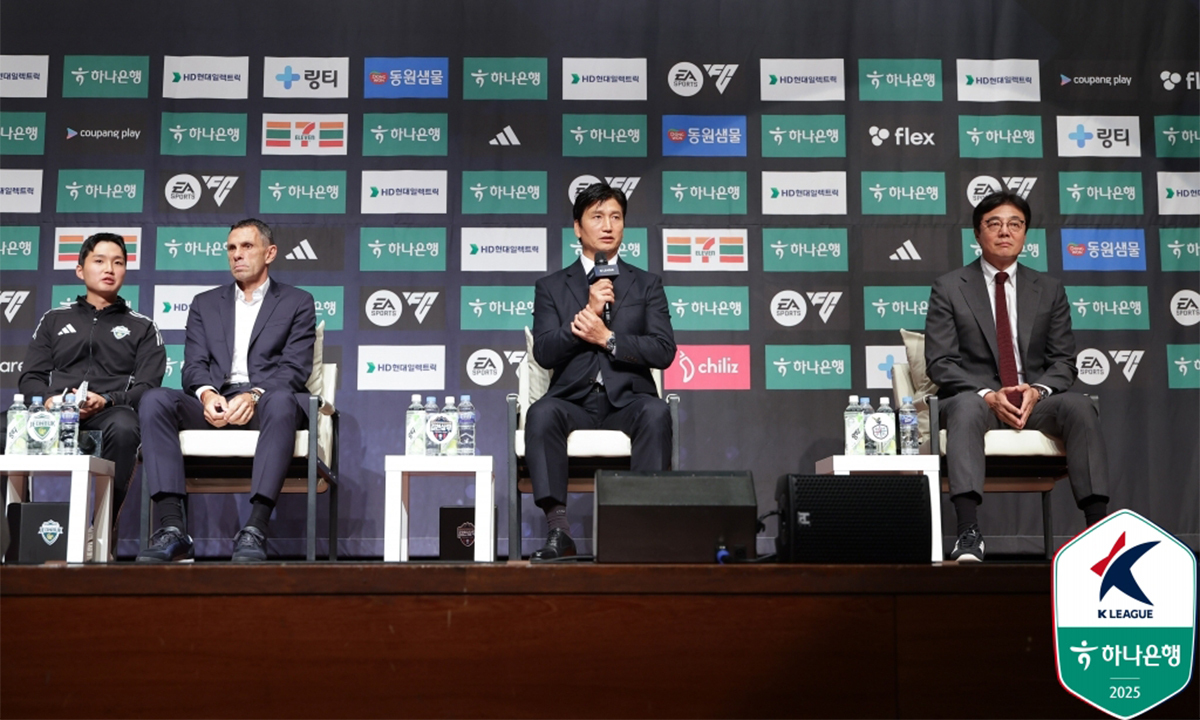 하나은행 K리그1 2025 파이널라운드 미디어데이가 22일 서울 마포구 상암동 누리꿈스퀘어에서 열렸다. 거스 포옛 전북 현대 감독, 정정용 김천 상무 감독, 황선홍 대전하나시티즌 감독이 참석해 마지막 혈투를 향한 당찬 포부를 던졌다.
