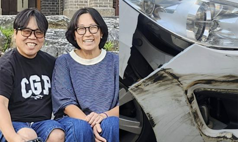 함께 공개한 사진에는 사고 차량의 심하게 긁힌 모습이 담겨 있었다. 눈에 띄는 스크래치로 당시 충격이 고스란히 전해졌다.