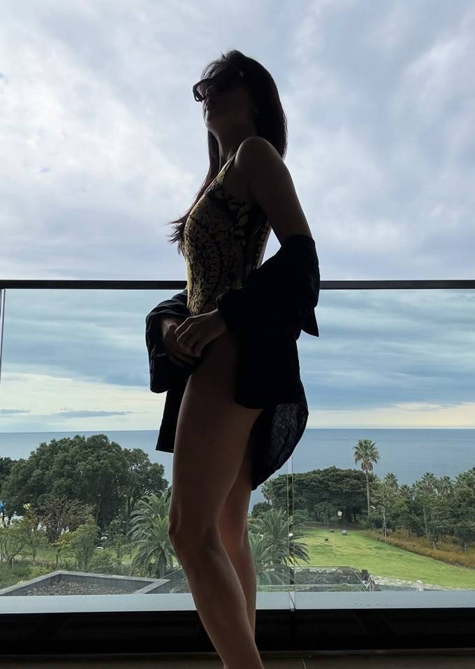 공개된 사진 속 박하선은 원피스 수영복 위에 블랙 시스루 셔츠를 걸쳐 세련된 스타일을 선보였다. 매끈한 다리 라인과 탄탄한 몸매가 돋보였으며, 자연광 아래 빛나는 피부와 여유로운 포즈로 고급스러운 화보 분위기를 자아냈다.