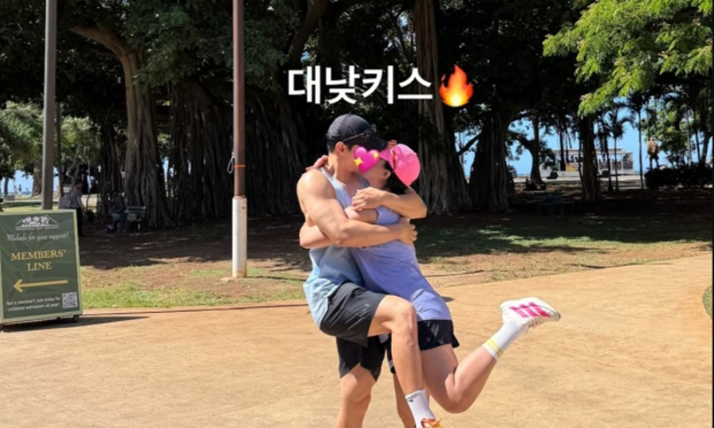 공개된 사진 속 랄랄은 “‘대낮키스’”라는 문구와 함께 11살 연상의 남편과 하와이의 한 거리에서 입을 맞추는 모습을 담았다.