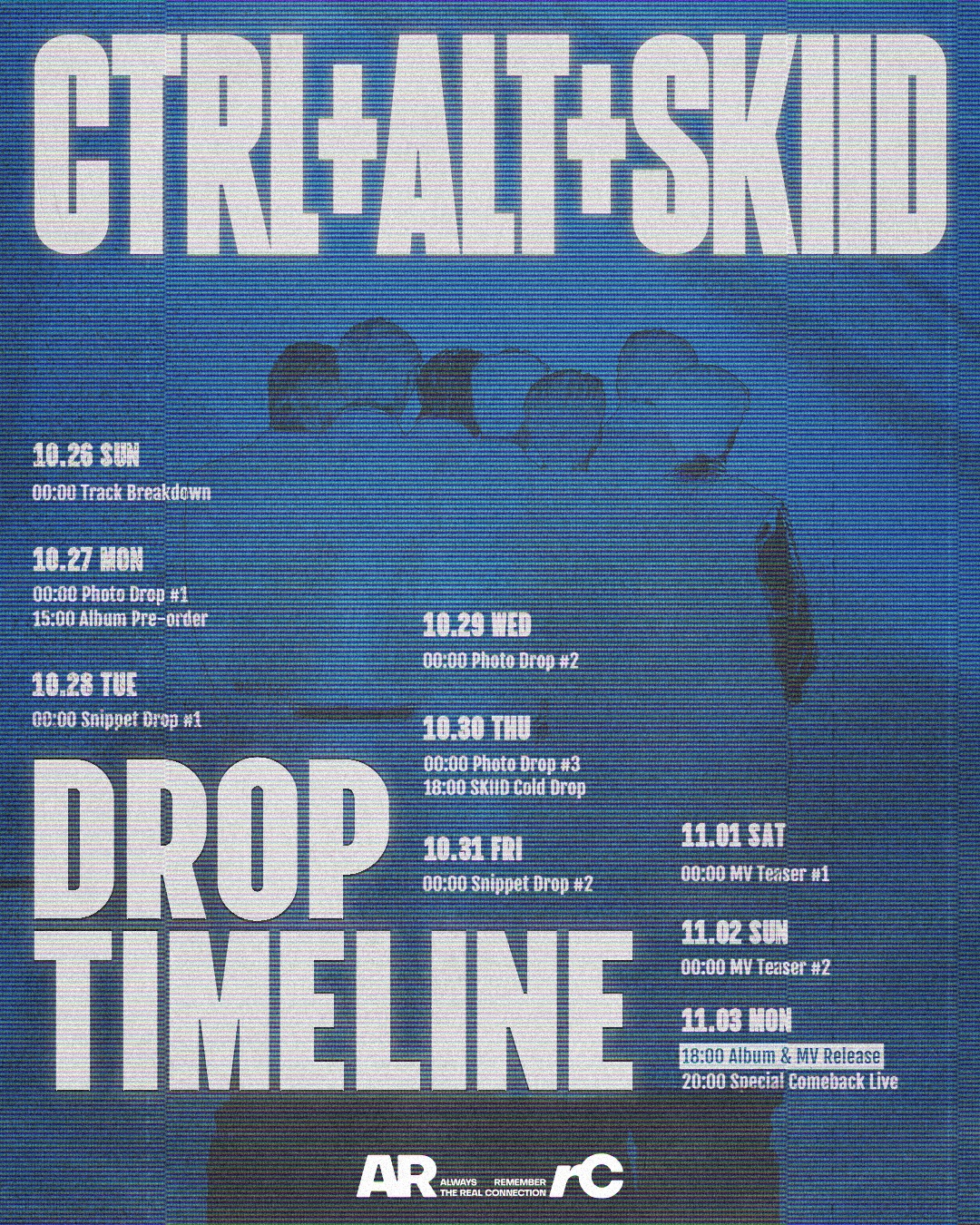 아크(앤디, 최한, 도하, 현민, 지빈, 끼엔, 리오토)는 오늘(24일) 0시 공식 SNS를 통해 싱글 2집 'CTRL+ALT+SKIID(컨트롤+알트+스키드)'의 'Drop Timeline(드롭 타임라인)'을 게재했다.