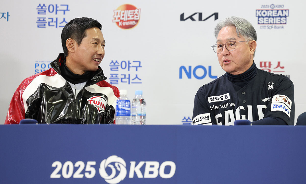 프로야구 LG와 한화가 오는 26일 잠실구장에서 2025 KBO리그 한국시리즈(KS·7전4선승제) 1차전을 치른다. 이에 앞서 25일 오후 2시 같은 장소에서 KS 미디어데이가 열렸다. LG에선 염경엽 감독, 박해민, 임찬규가 참석했고 한화에선 김경문 감독, 채은성, 정우주가 나서 출사표를 던졌다.