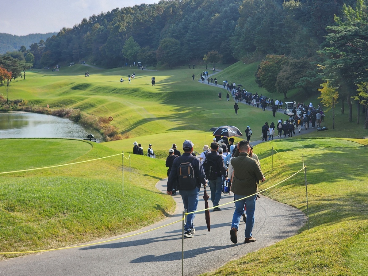 주말의 시작을 알리는 25일 현장에는 구름 관중이 몰리면서 뜨거운 열기를 자랑했다. 이번 대회 총 관중 집계 DP 투어 측에서 하기 때문에 정확한 집계는 최종 4라운드가 열리는 26일 오후에나 나올 것으로 보인다. 다만 대회 관계자는 “정확한 집계가 나와봐야 알겠지만, 예상보다 많은 갤러리가 우정힐스CC를 찾았다”고 설명했다.