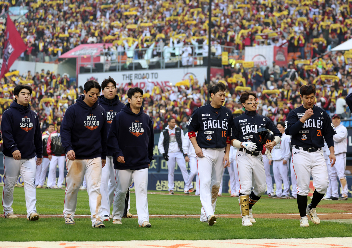 19년 만에 한국시리즈(KS·7전4선승제) 무대를 밟은 한화. 기쁨도 잠시. 첩첩산중이다. 첫 경기에서부터 어려운 경기를 이어갔다. 26일 서울 잠실구장에서 열린 LG와의 ‘신한 쏠뱅크 KBO리그 포스트시즌(PS)’ KS 1차전서 2-8로 패했다. 확률 싸움서 불리한 위치에 서게 됐다. 역대 KS서 1차전 승리 팀의 우승 확률은 73.2%(41차례 중 30번)나 된다. 기선제압에도 실패했다. LG의 경우 그간 KS서 1차전을 잡은 경우 예외 없이 모두 정상에 오른 바 있다.