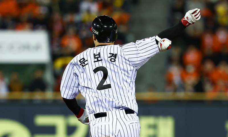 문보경은 “사실 오랜만에 게임을 하다보니 공이 잔상이 남는 것처럼 보였다. 1차전과 마찬가지로 보이면 친다는 생각 뿐”이라고 겸손한 소감을 밝혔다. 이어 “특별히 바꾼 건 없다. 하던 대로 훈련했다. 그동안 시합이 없었는데, 방망이에 대한 잡생각을 버릴 수 있었다. 훈련만 열심히 했던 게 좋은 효과를 봤다”고 수줍은 미소를 띠기도 했다.