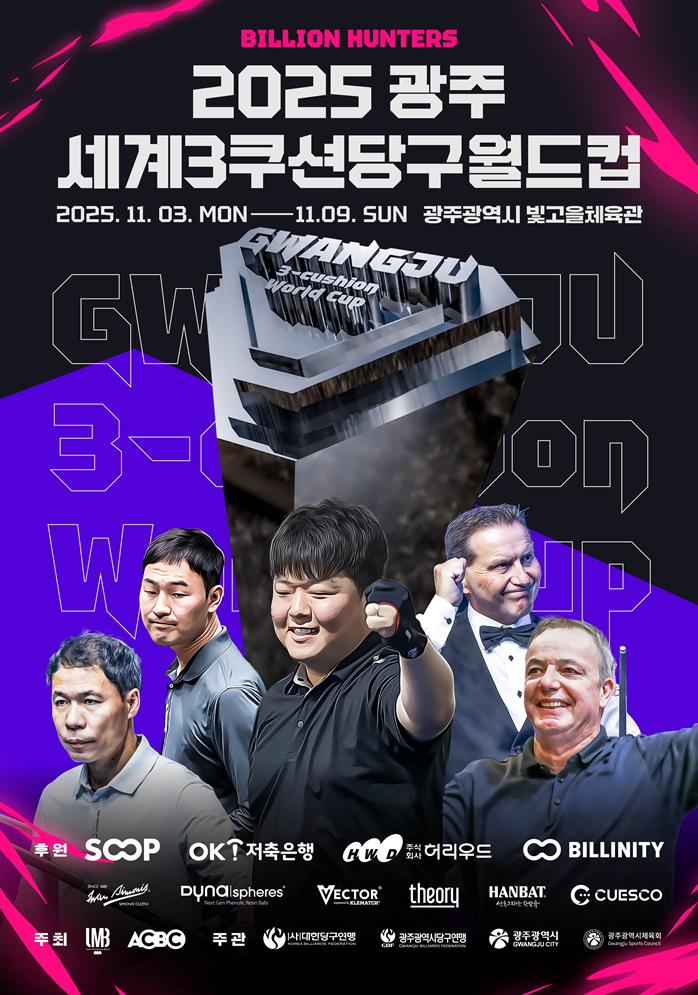 이어서 세계3쿠션 최정상 선수들이 다음 달 3일부터 시작되는 조별 예선전(PPPQ)을 시작으로, 9일 결승까지 광주광역시 빛고을체육관에서 열전을 펼친다.