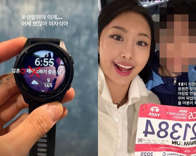 3일 곽선희는 자신의 SNS를 통해 “무슨 말이야 이게. 어제 했잖아 이 자식아”라는 문구와 함께 여러 장의 사진을 공개했다. 게시된 사진에는 ‘레이스 하기 좋은 날’이라는 문구 위에 X표시를 하고, 옆에 ‘결혼 O’라고 적은 손글씨가 담겨 있어 눈길을 끌었다. 이는 뉴욕 마라톤 완주 후 혼인신고를 하겠다고 예고했던 약속을 실천한 것으로 보인다.
