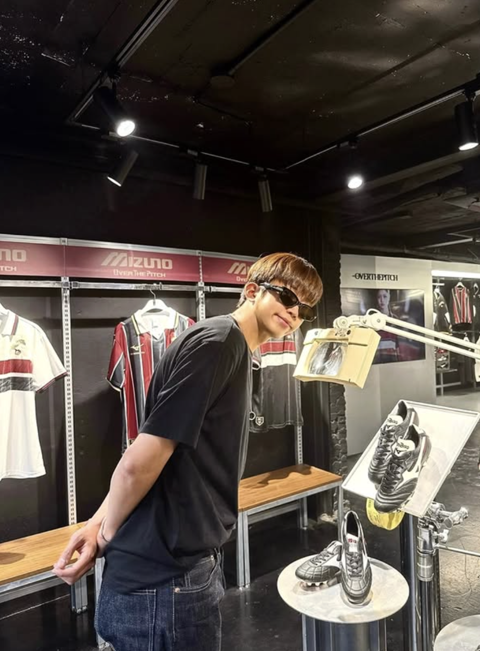 공개된 사진 속 그는 선글라스를 착용하고 캐주얼한 옷차림으로 포즈를 취하고 있다. 연예계 대표 축구팬으로 알려진 임영웅은 흑색 티셔츠와 청바지를 입고 전시된 축구화를 유심히 살펴보는 모습이다. 두 손을 뒤로 모은 채 진지하게 축구화를 관찰하는 모습은 귀엽고 친근한 매력을 더했다.