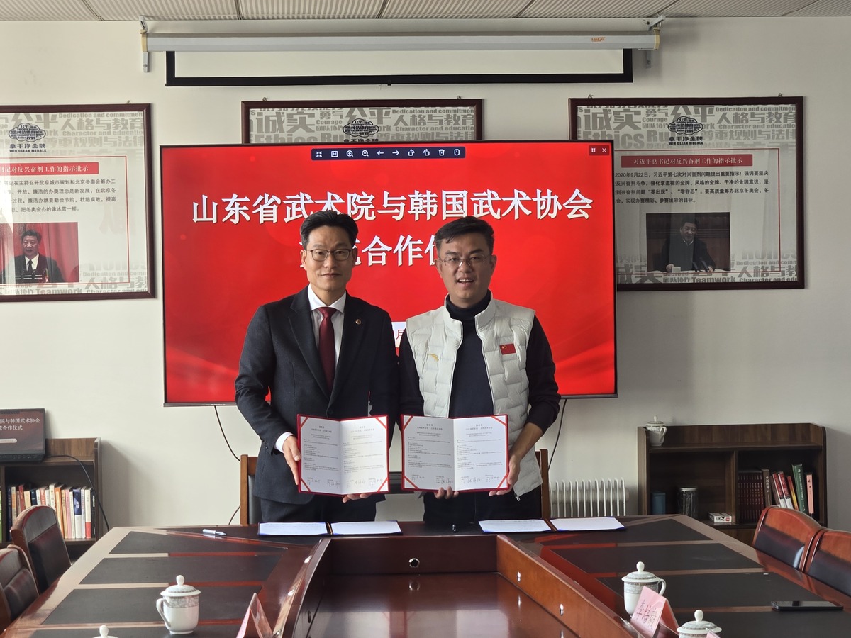 대한우슈협회는 28일 중국 산동성 지난에서 산동성우슈원과 교류·협력에 관한 업무협약(MOU)을 체결했다.