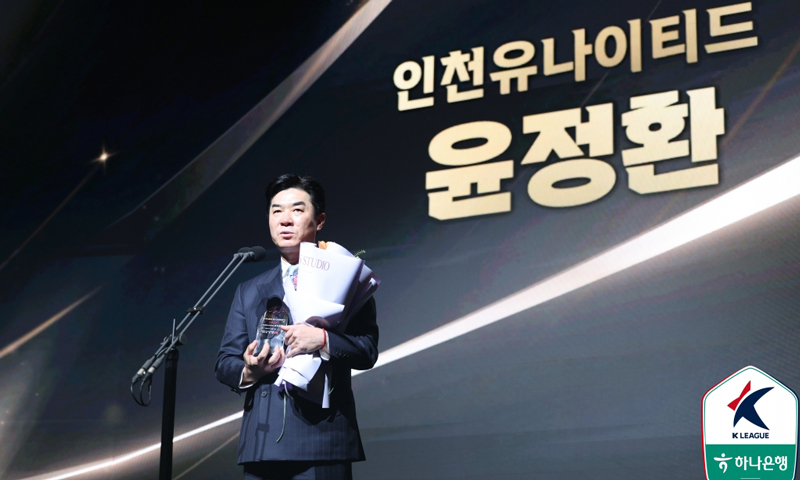 2년 연속 감독상이다. 윤 감독은 지난 시즌 K리그1 강원FC의 준우승을 이끌며 감독상을 받았다. 올해는 인천 지휘봉을 잡고 리그 우승을 이끌었다. 개막전 승리를 시작으로 안정적인 경기력을 이어갔으며, 8라운드 이후 단 한 번도 선두 자리를 내주지 않았다. 특히 15경기 연속 무패(12승 3무)와 시즌 연패 단 1회 등 수준 높은 경기력을 선보였다. 이 공을 인정받아 K리그2 감독상을 수상했다. K리그 역사상 K리그1와 K리그2에서 감독상을 받은 건 윤 감독이 처음이다.