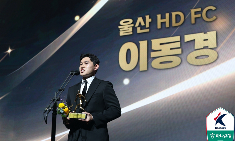 이동경은 1일 서울 서대문구 스위스 그랜드 호텔 컨벤션홀에서 열린 ‘하나은행 K리그 2025 대상 시상식’에서 정규리그 최우수선수(MVP)에 선정됐다. 각 구단 감독과 주장, 미디어 투표에서 총 71표를 득표해 환산 점수 53.69점을 받았다. 우승팀 프리미엄으로 수상이 유력했던 박진섭(전북 현대·환산 점수 35.71점)을 제쳤다.