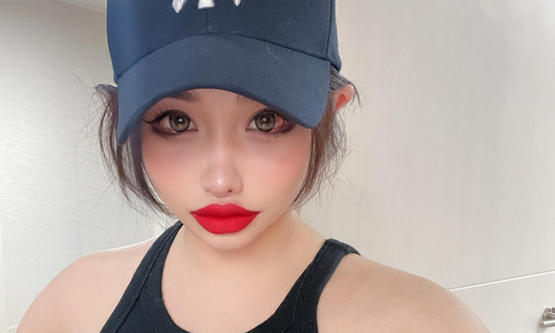 사진 속 박봄은 검은색 민소매 상의와 파란색 캡 모자를 착용한 채 카메라를 바라보고 있다. 붉은색 립스틱으로 포인트를 준 짙은 메이크업과 또렷한 이목구비가 돋보이며, 날렵한 턱선이 시선을 끌었다.