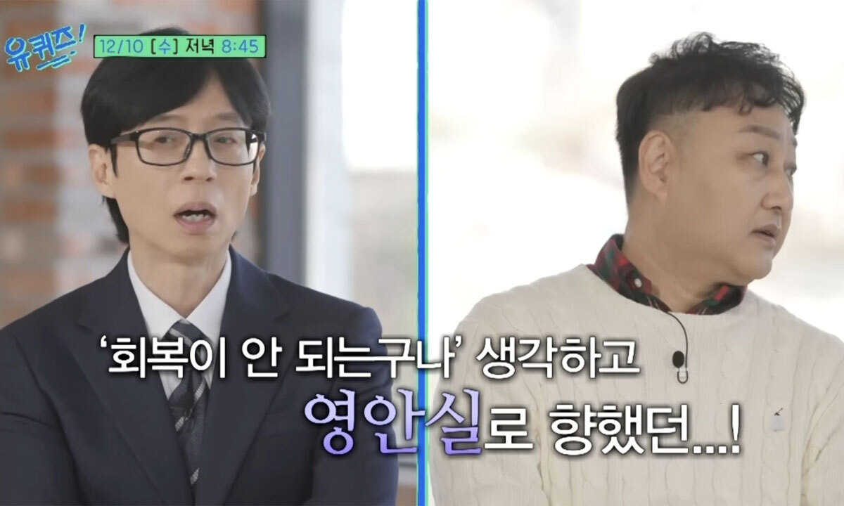 9일 tvN ‘유 퀴즈 온 더 블럭’ 공식 유튜브 채널에는 ‘20분간 심정지를 겪고 기적처럼 돌아온 김수용! 김숙·임형준의 응급처치부터 긴박했던 당시 상황 최초 공개’라는 제목의 예고편이 게재됐다. 영상에서 김수용은 자기님으로 출연해 생사를 넘나들었던 순간을 직접 전했다.
