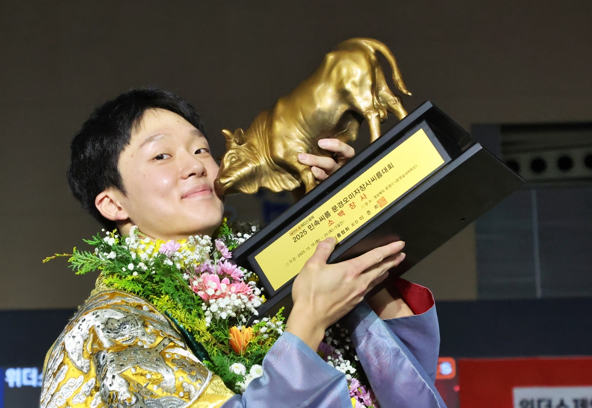 씨름선수 박상준(정읍시청)이 16일 경북 문경시 문경실내체육관에서 열린 ‘위더스제약 2025 민속씨름 문경오미자장사씨름대회’ 소백장사(72㎏ 이하) 결정전(5전3선승제)에서 전성근(영월군청)을 3-1로 꺾고 우승을 차지했다.