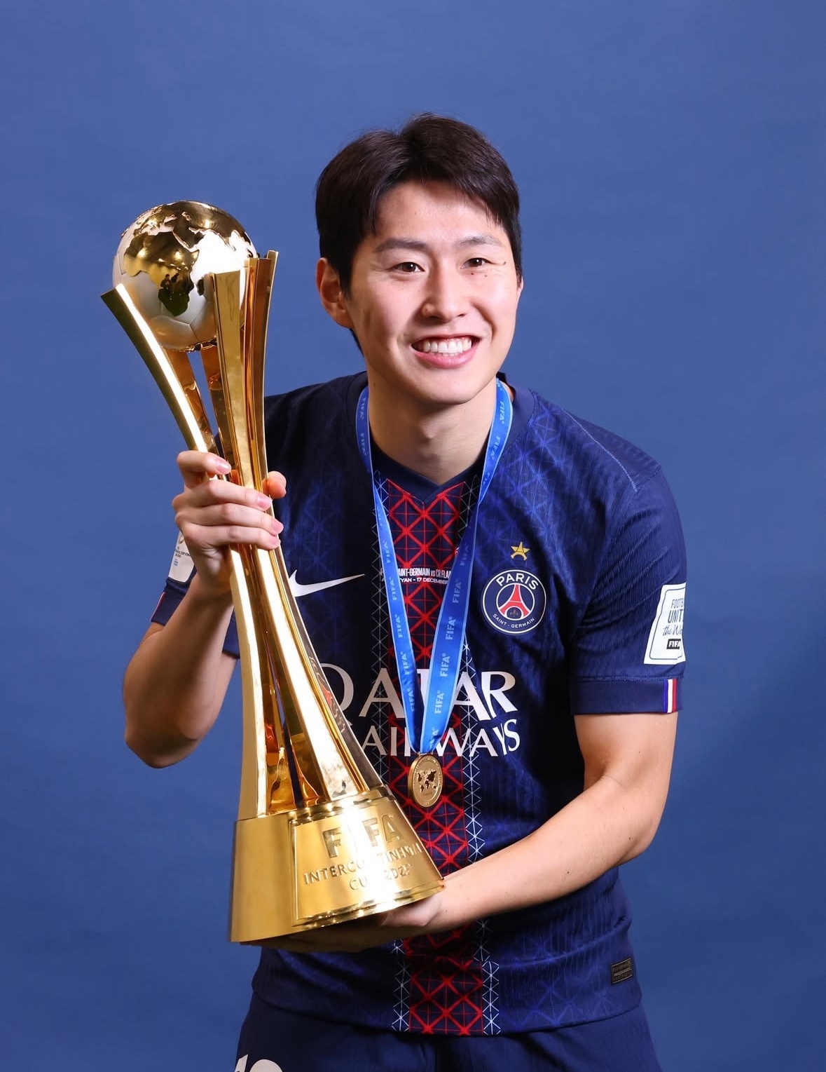 기쁨의 세리머니, 참을 수 없었다. 이강인은 시상식에서 트로피를 번쩍 들어 올렸다. 정확한 부상 상태는 아직 공개되지 않았으나 세리머니를 함께한 만큼 심각한 부상은 아닌 것으로 보인다. 시상식 후 이강인은 SNS를 통해 “세계 챔피언이 자랑스럽다”면서 “알레즈 파리(Allez Paris-PSG 응원 문구)”를 외쳤다.