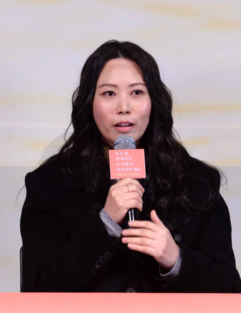 김해영 감독이 22일 서울 용산구 CGV 용산점에서 열린 영화 '오늘밤 세계에서 이 사랑이 사라진다 해도(감독 김해영)'기자간담회에서 질문에 답하고 있다.