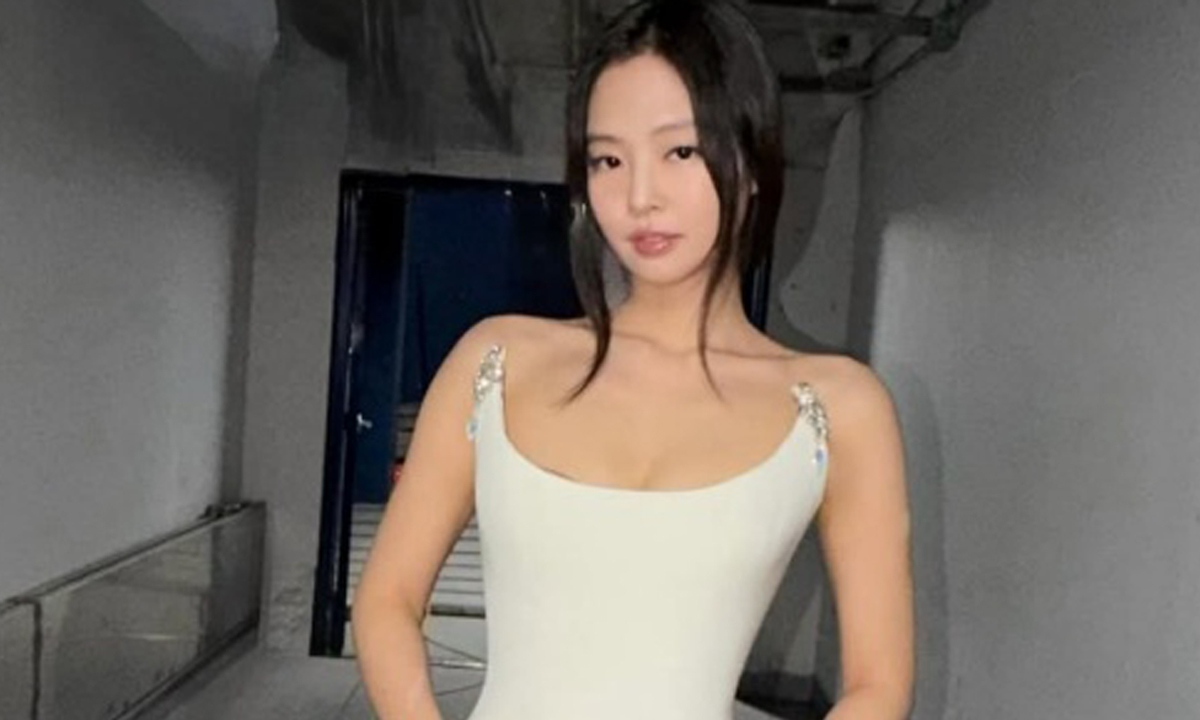 블랙핑크 제니가 가녀린 허리라인이 잘 드러나는 아름다운 드레스 자태를 뽐냈다.