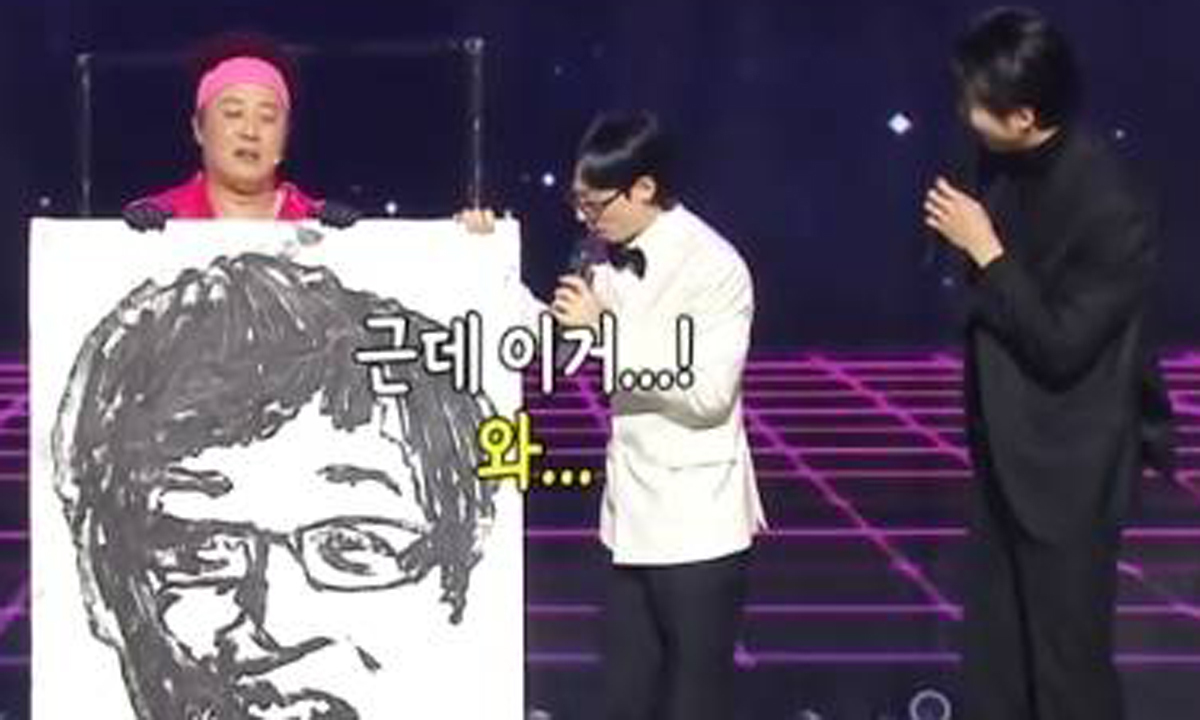 그런 후 정준하는 대형 도화지에 무언가를 그리기 시작했다. 알아볼 수 없는 형체였지만 완성 후 그림을 거꾸로 세우자 유재석 얼굴이 명확히 드러났다.