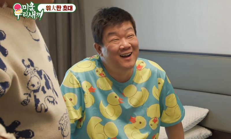 유민상은 손님맞이를 위해 피자, 김치찌개, 짜장면, 탕수육, 팔보채 등 배달 음식을 풍성하게 준비했다. 그는 1월 1일까지 40kg를 빼는 게 목표라며 짜장면을 먹지 않는 홍윤화를 위해 무려 2kg짜리 대용량 샐러드를 내놓았다. 이에 김민경은 “얘가 2kg 어떻게 먹어”라고 걱정했지만, 홍윤화는 “어렵지 않다”고 너스레를 떨어 웃음을 유발했다.