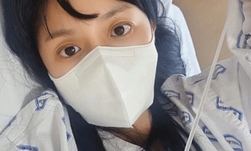 공개된 사진에는 입원 중인 강은비의 모습이 담겼다. 수척해진 얼굴에 마스크를 쓰고 있어 안타까움을 자아낸다.