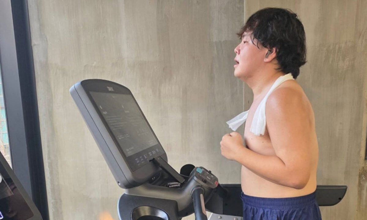 사진 속 곽튜브는 웹툰작가 겸 방송인 기안84와 체육관 바닥에 앉아서 쉬고 있다. 또 상의를 탈의하고 러닝머신을 뛰는 모습도 볼 수 있다.