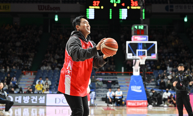 깜짝 손님도 있었다. ‘부산 이웃 주민’ 프로야구 롯데 전준우가 시투를 맡았다. 6번의 자유투 시도 끝에 겨우 성공했다. 전준우는 “농구가 어렵더라. 야구만큼이나 쉽지 않다”며 “사실 시구는 배우면 좋지만, 농구는 보다 친근한 스포츠지 않나. 나를 믿고 따로 배우지 않았는데”라고 웃었다.