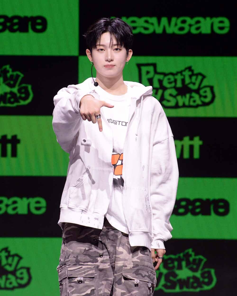 그룹 아이덴티티 한예준이 5일 서울 용산구 블루스퀘어에서 진행된 'yesweare' 발매기념 쇼케이스에서 포즈를 취하고 있다.