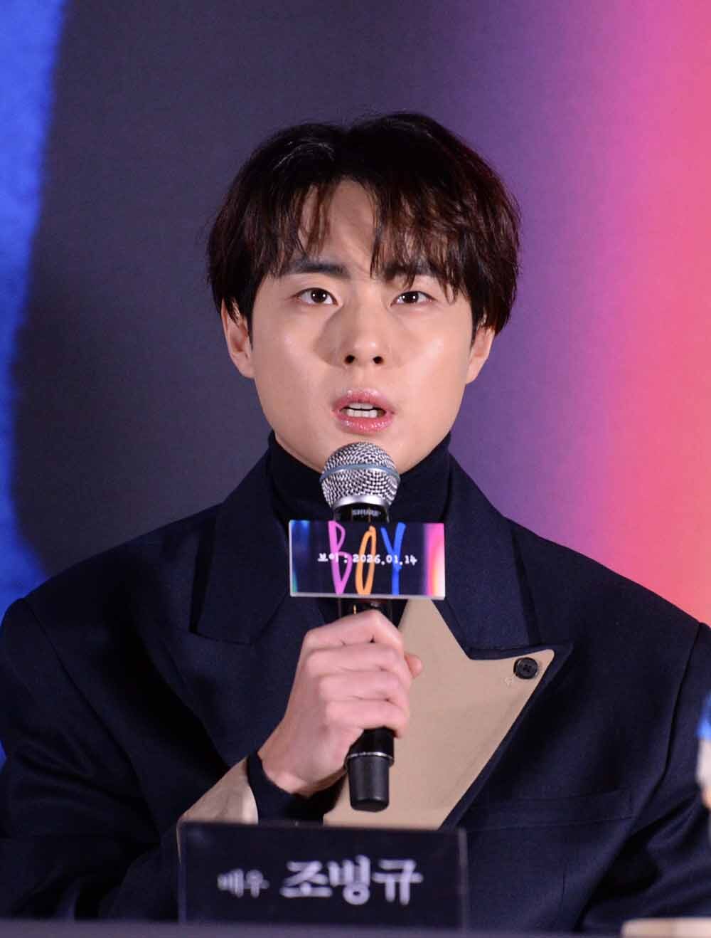 배우 조병규가 5일 서울 용산구 CGV 용산점에서 열린 영화 '보이(감독 이상덕)'기자간담회에서 질문에 답하고 있다.