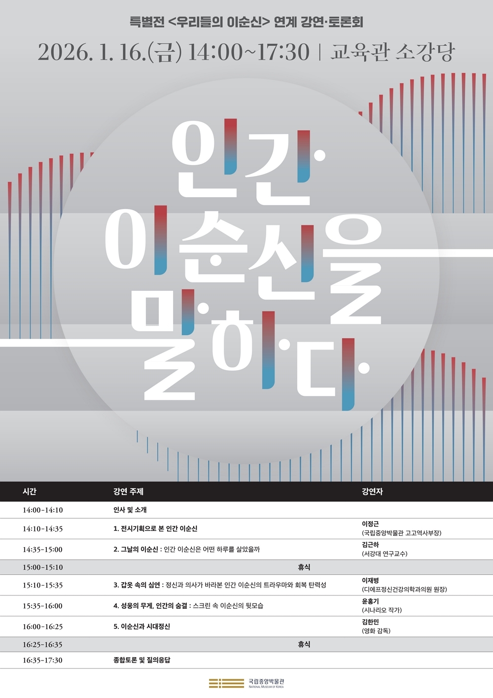 국립중앙박물관은 오는 16일 교육관 소강당에서 강연·토론회 ‘인간 이순신을 말하다’를 개최한다고 8일 밝혔다.