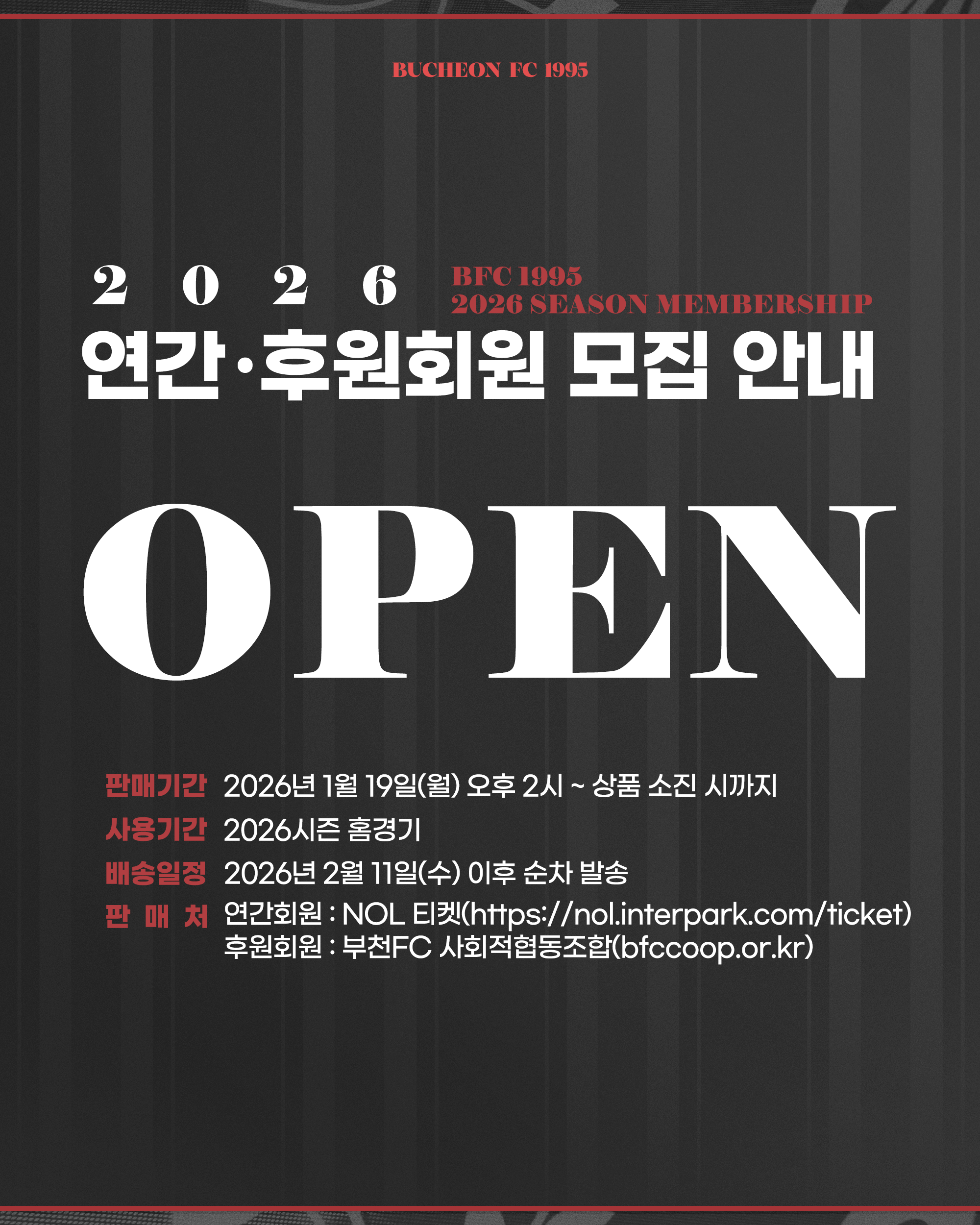 부천FC1995가 2026시즌 연간·후원회원을 모집한다.