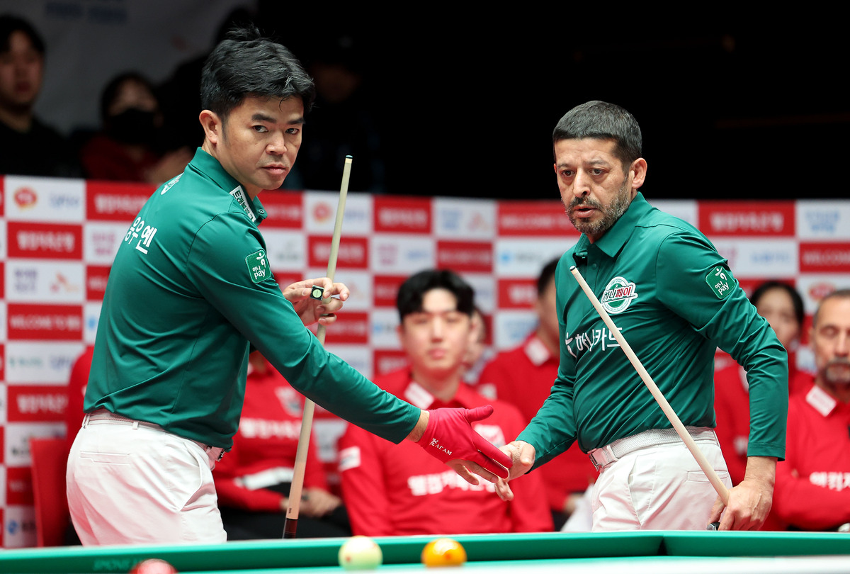 16일 경기도 고양시 ‘고양 킨텍스 PBA 스타디움’에서 열린 ‘웰컴저축은행 PBA 팀리그 2025-2026’ 포스트시즌 플레이오프(5전 3선승제) 1차전에서 하나카드는 세트스코어 4-2로 웰컴저축은행에 승리를 거뒀다.
