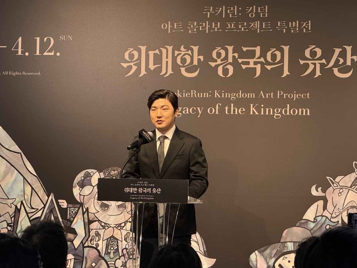 먼저 이날 조길현 데브시스터즈 대표는 환영사를 통해 “이렇게 대한민국을 대표하는 장인분들을 한자리에 모시게 돼 가슴이 벅차다”며 소감을 전했다. 이어 “2024년부터 선보인 전통예술 컬래버 작품을 모아 총 전시를 진행하게 됐다. 지난달에는 국가유산청과 함께 덕수궁에서 대한제국 역사를 쿠키런 이야기로 해석하는 전시를 했다. 이번 특별전은 캐릭터들의 이야기를 전통문화와 연결하고 또 진보적인 미디어아트와 결합해서 과거와 현재, 미래가 연결되는 그런 새로운 가치를 창출한다”고 소개했다.